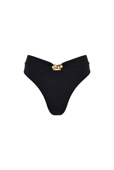 An elegant, high-waisted bottom crafted with vintage-inspired gold shell hardware - The Isola Bella Bottom will make you feel instantly elevated. Featuring a high-cut leg for a flattering silhouette, medium coverage at the back and a figure-hugging waistband with beautiful swirl hardware at centre front. Pairs perfectly with the Isola Bella Top.