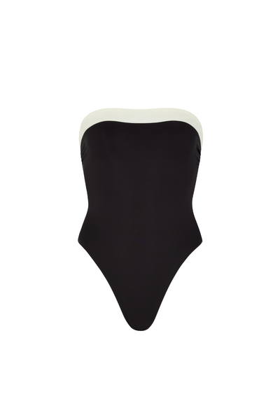 Show off your elegant side in this stunning strapless suit. Designed with a two-tone aesthetic, this timeless staple piece is perfectly worn as a swimsuit or bodysuit. Crafted with eco-friendly Pyratex® and enhanced with biodegradable elastane, the Monte Carlo is the effortless show stopper you've been looking for.
