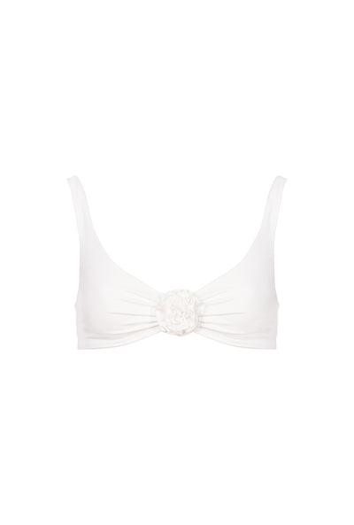 Our most flattering and supportive silhouette - Designed to give your bust a natural lift without any underwire or padding for ultimate comfort. Adorned with a statement rosette at the centre front, the Sardinia top is a romantic staple piece with feminine gathering detail and full adjustability at the back. Complete with a beautiful seamless finish.