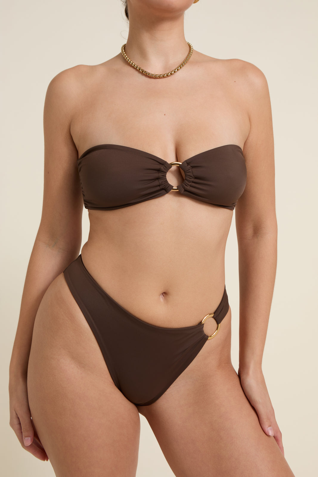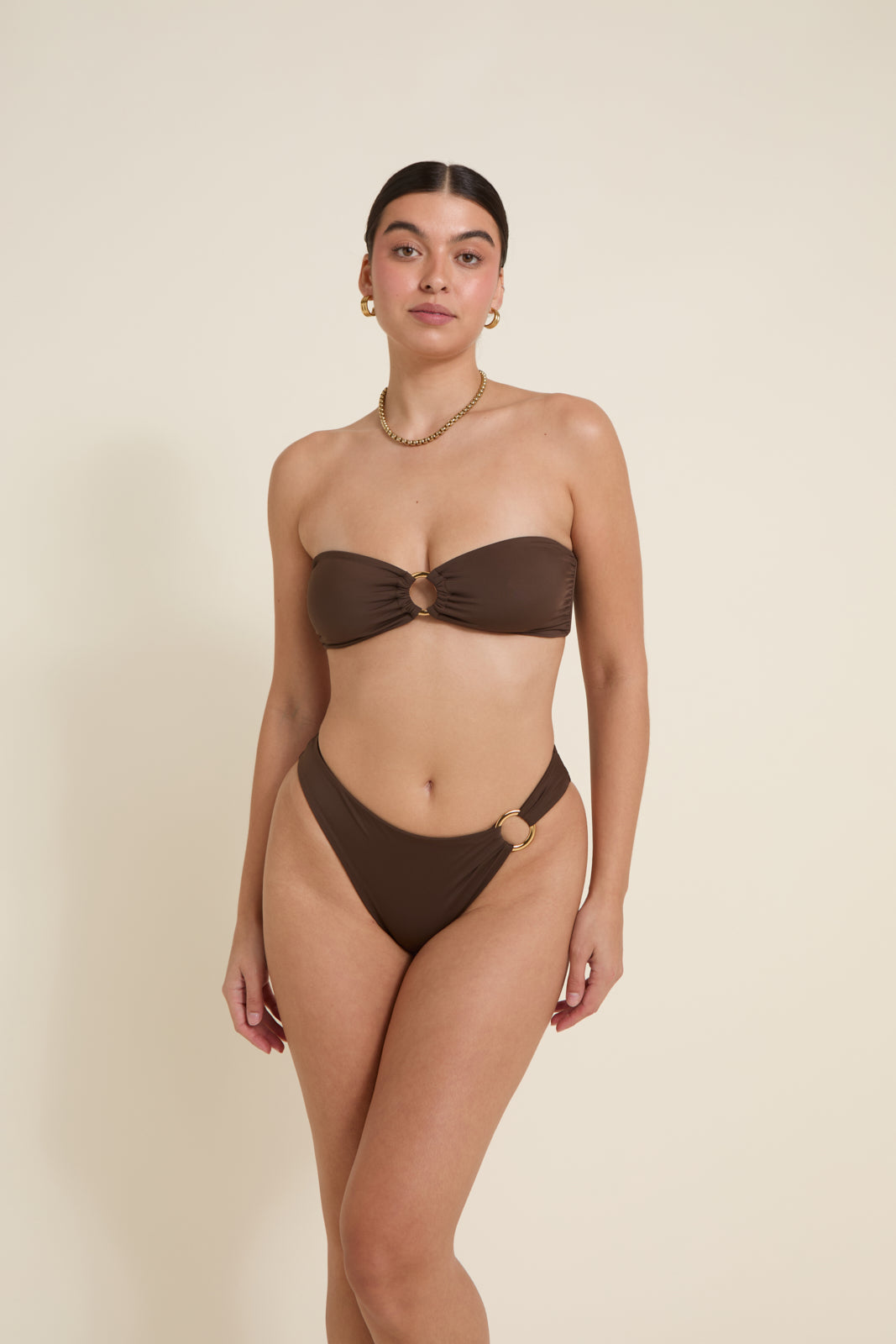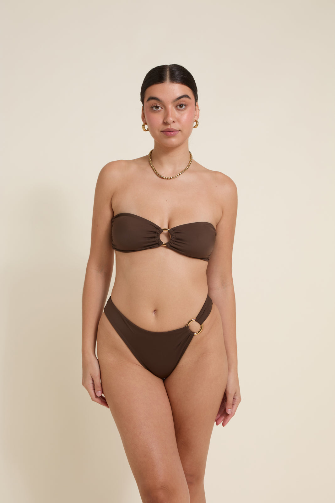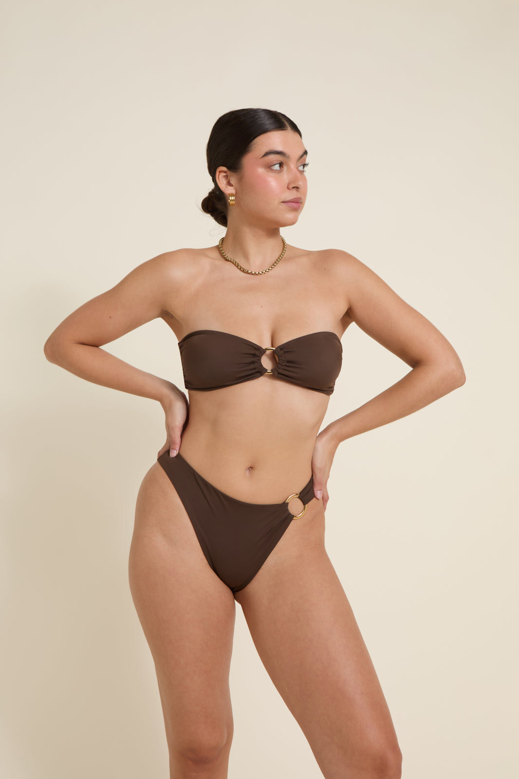 The perfect, go-to bandeau top for lounging in the sun. The Acapulco Top features gold ring hardware at the front, extra support with soft, side-boning to keep its shape and an adjustable back-tie. *Comes with additional thin strap which can be tied as a halter neck.