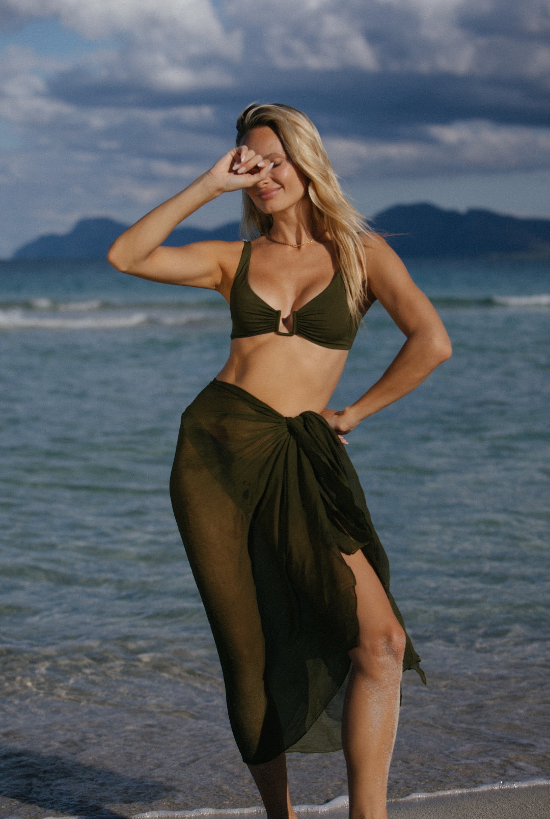 Our signature - Your favourite. The Palma top gives your bust a natural lift without any padding or underwire for ultimate comfort. Features fully adjustable straps, back ties for adjustability and a unique plunging neckline with gathered detailing on the cups.