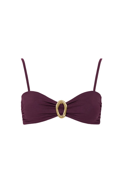 This flattering balconette style is minimalist and striking. Crafted with a bold, vintage-inspired gold centre ring, the feminine gather detailing sculpts your bust whilst the adjustable straps and tie-back design makes this style perfectly customisable.